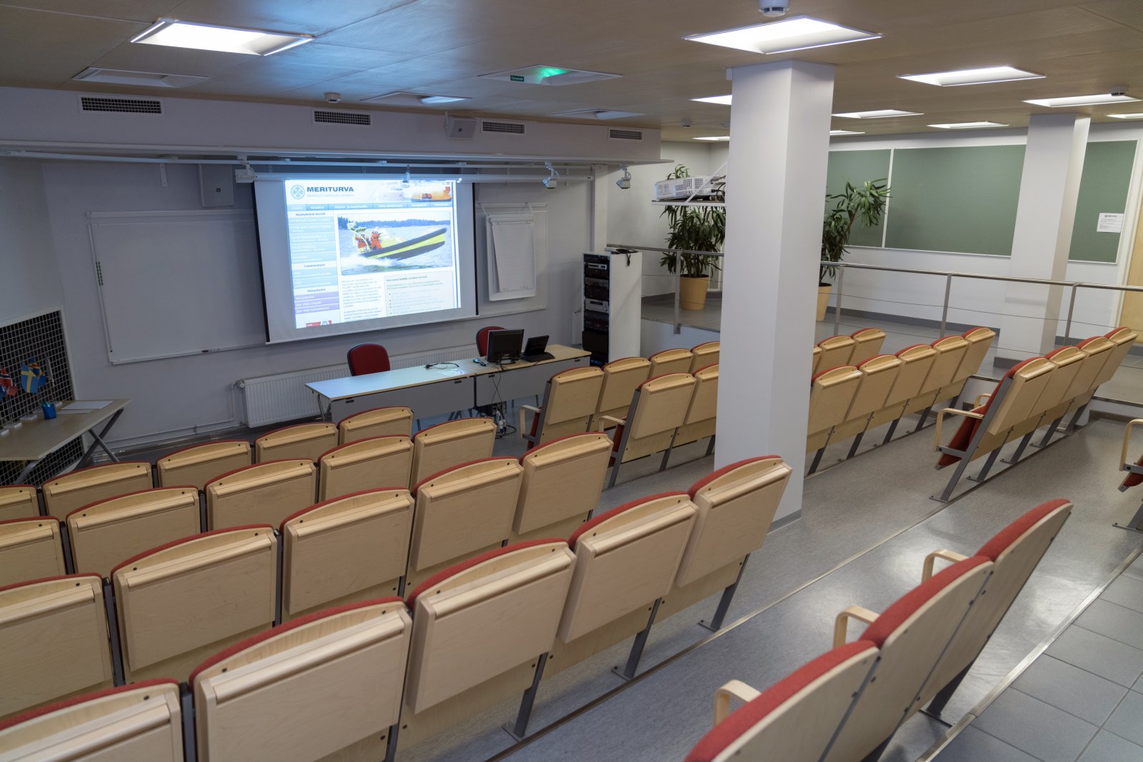 Kokoustilojen, Bogskärin (30 henk.) ja Märketin (14-16 henk.), yhdistelyllä saadaan tilat suuremmallekin ryhmälle. Auditorio on tarkoitettu 60 hengelle, joten siellä järjestät isommankin tilaisuuden