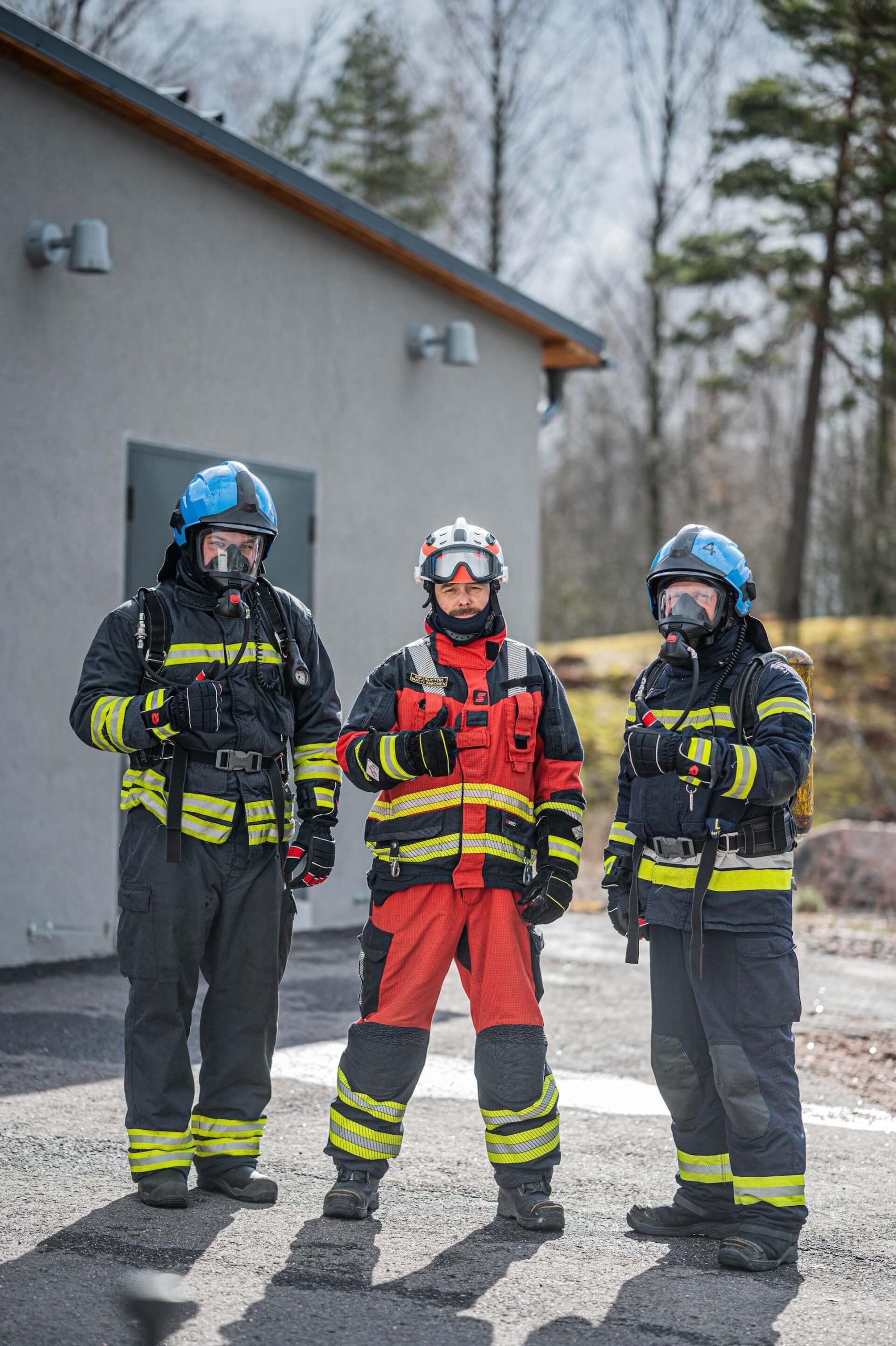 Palokoulutusyksikkö antaa kurssilaisten käyttöön sammutusasun.